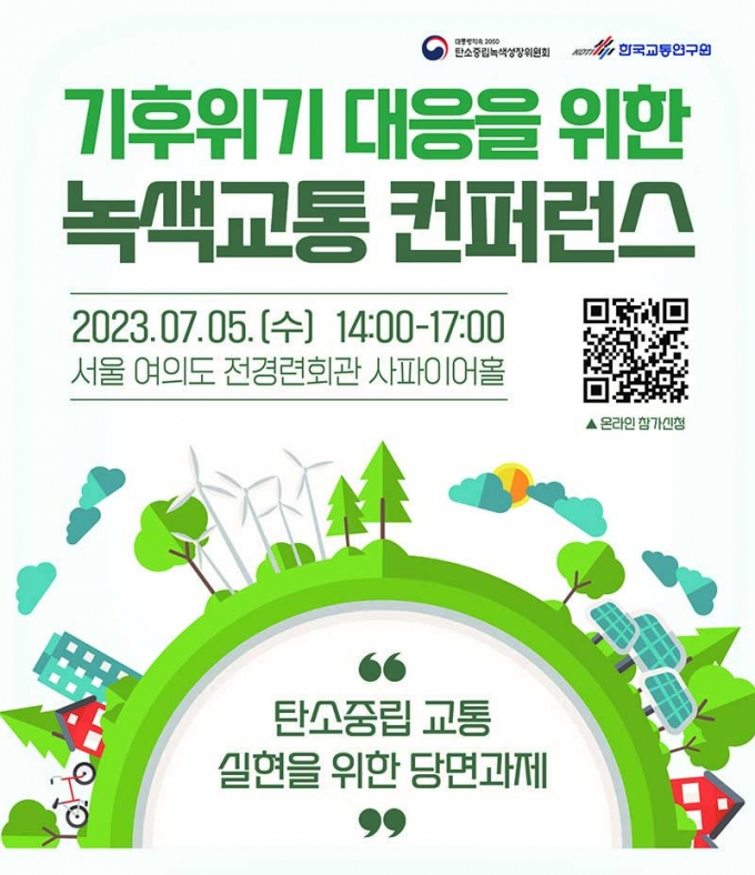 2050탄소중립녹색성장위원회와 한국교통연구원이 오는 5일 서울 전경련회관 컨퍼런스센터 사파이어홀에서 '기후위기 대응을 위한 녹색교통 컨퍼런스'를 개최한다고 4일 밝혔다.