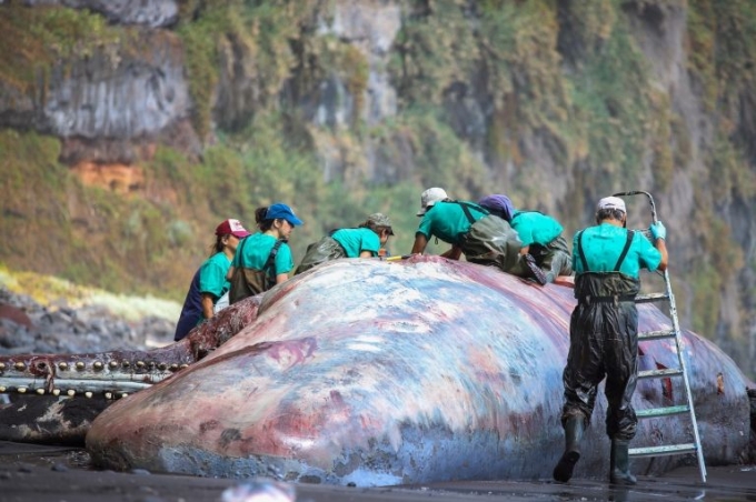 4일(현지시간) 영국 가디언 등 외신에 따르면 지난달 라스 팔마스대학의 수의학·식량안보연구소장 안토니오 페르난데즈 로드리게스(Antonio Fernández Rodríguez)가 카나리아제도 라 팔마섬의 노갈레스 해변에 떠내려온 향유고래 사체를 부검하던 도중 용연향을 발견했다.