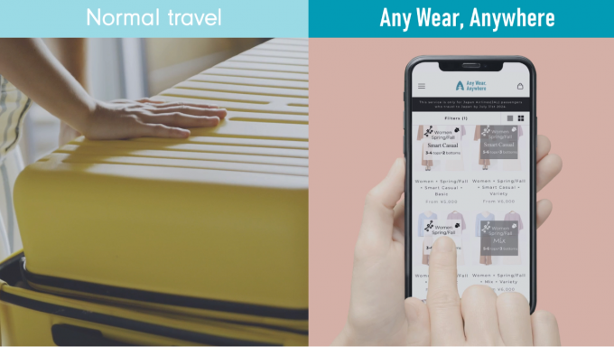 '애니 웨어, 애니웨어' 서비스를 이용하고자 하는 일본항공 승객들은 방일 최대 한달전부터 웹사이트를 통해 2주간 입을 옷을 예약할 수 있다. 방문목적, 계절, 크기, 색상에 따라 알맞은 옷을 선택할 수 있다. 상·하의, 겉옷 포함 최대 9종의 의류를 대여할 수 있다.
