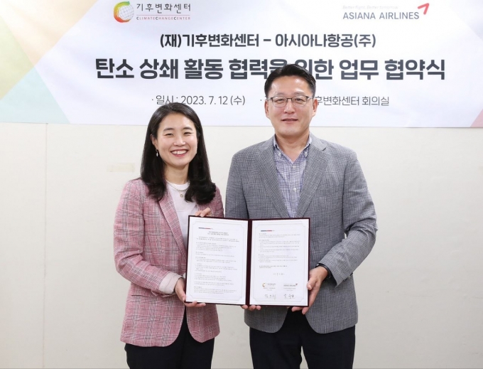 기후변화센터가 아시아나항공과 기후위기 대응을 위한 탄소상쇄 협력 업무협약을 맺었다고 12일 밝혔다.