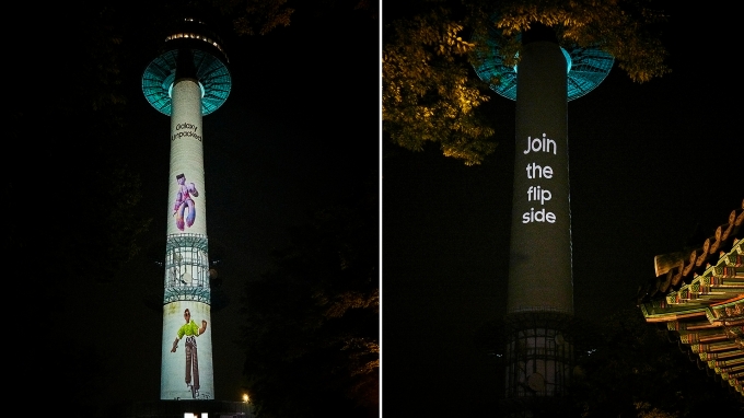 24일 삼성전자는 갤럭시 폴더블 신제품이 일상에서 무한한 가능성을 열어준다는 의미의 'Join the flip side' 메시지를 지난 22일부터 서울 남산 N서울타워를 통해 알리는 옥외광고를 시작했다고 밝혔다. 'Join the flip side'는 기존과 다른 세상(flip side)으로 소비자들을 초대한다는 의미를 담고 있다. 야간 디지털 광고는 이달 28일까지 매일 밤 8시~11시까지 운영된다.