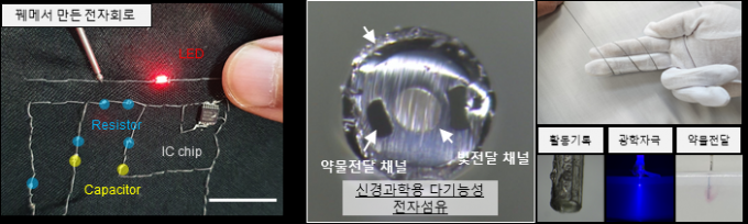 나아가 연구팀은 액체금속 복합체를 코팅하는 방법이 다양한 실에 호환 가능하고, 재료의 생친화성이 우수하기 때문에 이를 이용해 신경과학 연구에 사용할 수 있는 섬유형 바이오 전자섬유를 구현했다. 연구팀은 이 코팅 방법을 이용해 기계적 변형에 영향을 받지 않는 뇌 활동 전극, 신경 자극 전극, 다기능성 옵토지네틱 프로브도 제작해 활용범위가 넓다는 것을 입증했다.