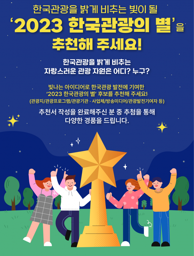 문화체육관광부와 한국관광공사가 26일부터 8월 8일까지 '2023 한국관광의 별' 후보 추천 이벤트를 진행한다.