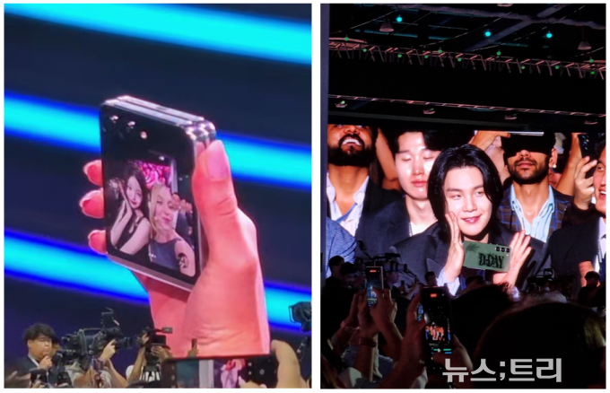 이날 언팩 행사장에는 BTS 슈가를 비롯해 아이브 장원영, 트와이스 정연, 스트레이 키즈 등 유명 아이돌들이 총출동해 자리를 빛냈다. 갤럭시Z 플립5의 확장된 디스플레이 '플렉스 윈도우'와 '플렉스 캠'을 소개할 때는 미국 유명배우 시드니 스위니가 깜짝 등장해 장원영과 함께 셀카를 찍는 모습을 연출하기도 했다.
