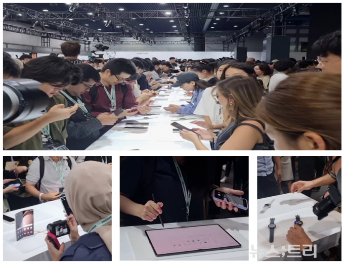 언팩 행사 직후 이어진 제품 체험 행사장에도 2000여명의 내외빈과 외신기자들로 북적였다. 외신기자들 사이에서는 '갤럭시 탭S9 시리즈'와 '갤럭시Z 시리즈'에서 모두 사용할 수 있는 'S펜'에 대해 실제 펜과 유사하다는 호평이 이어졌다. 반면 화면크기가 36.99cm로 가장 큰 '갤럭시 탭S9 울트라'에 대해서는 태블릿PC로선 너무 크고, PC처럼 활용하기엔 너무 작다는 의견이 나오기도 했다.