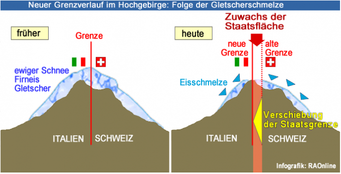 지구온난화로 알프스 빙하가 녹아버리면서 국경을 맞대고 있는 이탈리아와 스위스가 국경선을 다시 긋는다.