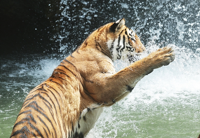 ▲용인 에버랜드에서 한국호랑이가 물속에서 더위를 식히고 있다. (사진=연합뉴스)