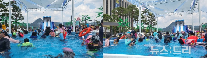 널찍한 물놀이장은 한번에 250명, 대기인원까지 300명, 하루 최대 2000명까지 수용가능하다. 높이 8m에 달하는 워터슬라이드가 우뚝 서 있고, 발밑까지 보이는 깨끗한 물에 차양막도 설치돼 있어 앞에 서있는 것만으로도 더위가 가셨다. 물놀이장에 들어간 아이들은 물놀이 삼매경에 푹 빠져있었다. 업무중이 아니었으면 기자도 그곳에 뛰어들 뻔했다.