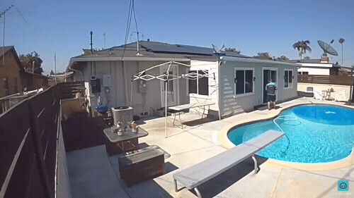 27일(현지시간) 뉴욕포스트 등 외신에 따르면 최근 캘리포니아 가데나에 있는 한 가정집에 방문한 택배 기사가 옷을 입은 채 그대로 수영장에 몸을 던지는 폐쇄회로(CC)TV 영상이 소셜서비스(SNS)에서 화제다.