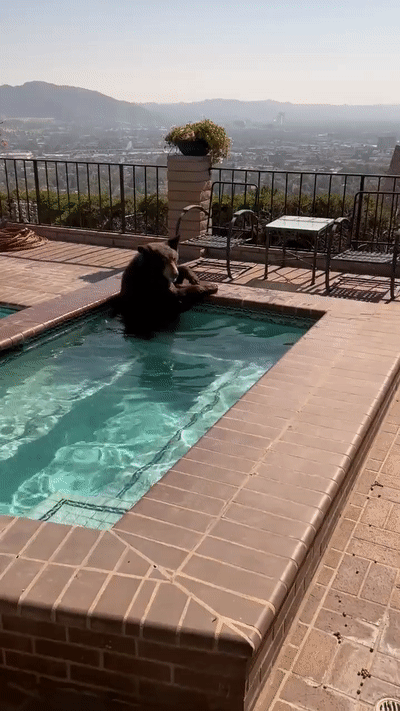 한달째 '극한폭염'이 이어지는 미국에서 너무 더운 나머지 가정집 수영장을 찾아 더위를 피한 야생곰이 화제다.