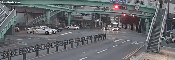 온라인 커뮤니티와 소셜서비스(SNS)에는 사고 당시 모습이 고스란히 담긴 CCTV 영상이 확산하고 있다. 영상을 보면 역주행하던 택시는 굉장히 빠른 속도로 교차로를 향해 돌진했다. 택시와 충돌한 버스는 그 충격으로 앞바퀴가 공중으로 둥 뜨면서 90도로 틀어지며 육교 계단에 부딪혔다. 택시도 충돌로 순식간에 전면이 파손되면서 화재까지 발생했다.