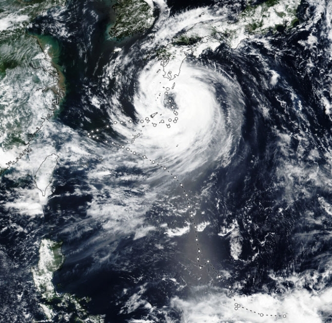 나사 지구관측소는 "중국과 일본 남부에 위치한 고기압의 영향으로 받아 태풍의 진로가 막히면서 두 번의 급선회가 발생했다"고 설명했다.