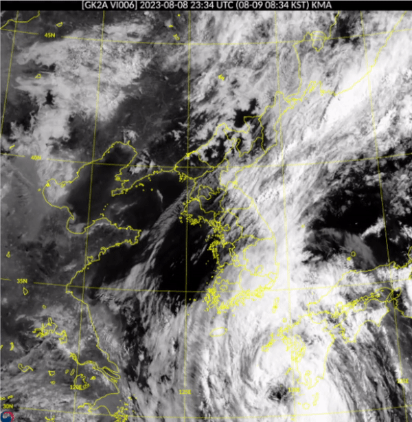 10일 남해안에 상륙할 예정인 제6호 태풍 '카눈'의 모습이 미국 항공우주국(NASA) 위성에 포착됐다. '카눈'의 크기는 한반도를 다 뒤덮을 정도로 거대하다.