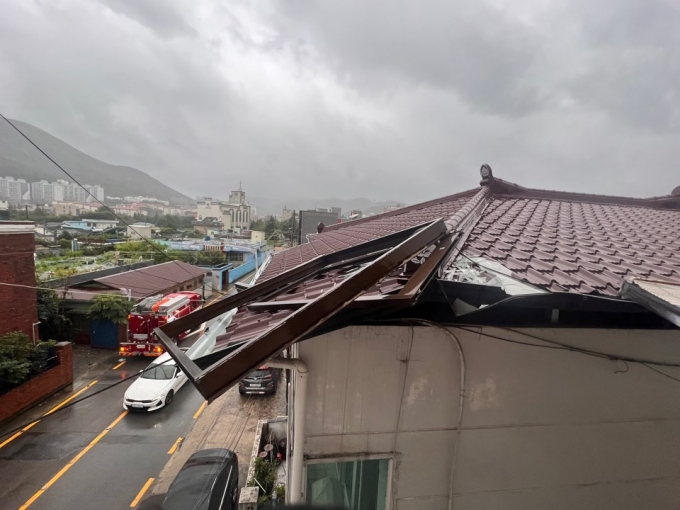 부산기상청에 따르면 오전 10시30분 기준 강서구의 순간 최대풍속 초속 34m, 남구는 초속 34.2m, 사하구 초속 30.5m에 이른다. 이 정도의 풍속은 낡은 간판이 떨어지고 가로수가 뽑힐 수 있는 위력이다.