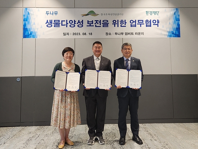 두나무는 이를 위해 지난 18일 한국수목원정원관리원, 환경재단과 업무협약(MOU)을 체결했다고 21일 밝혔다. 이번 협약은 두나무 ESG 키워드 중 하나인 '나무'의 일환으로, 2026년까지 3년간 '생물다양성 보전 NFT 프로젝트'를 추진하기 위해 체결됐다.