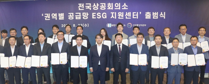 유럽연합(EU) 등 주요 선진국발 ESG 규범화에 따라 글로벌 공급망 내 수출 중소·중견기업도 환경, 노동인권, 준법경영 등 ESG 관련 부담이 커지고 있는 가운데 대한상공회의소가 23일 상의회관에서 전국상의 '권역별 공급망 ESG지원센터' 출범식을 개최했다.