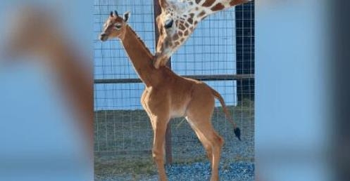 미국의 한 동물원에서 기린의 특징인 점박이 무늬가 없는 '민무늬' 기린이 태어났다.