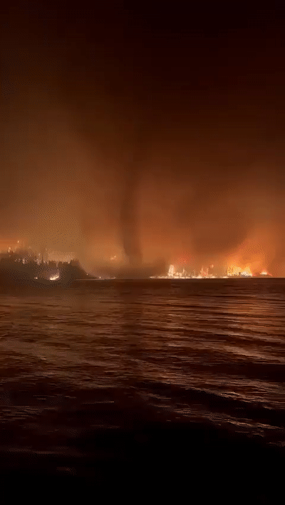 영상을 보면 화염과 연기가 솟구치는 가운데 호수 위에서 거대한 소용돌이가 불을 끌어올리고 있다. 관리국에 따르면 불 토네이도는 대기가 회전하는 조건에서 발생하는데, 이 지역의 복잡한 지형, 하강풍, 한랭 전선 등으로 인해 소용돌이가 형성되는 데 필요한 조건이 만들어졌다.