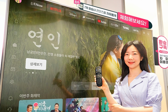 그러나 9월부터는 월 1만6500원 U+tv 프리미엄 요금제에 8800원을 추가하면 '환승구독'(월 2만5300원, 인터넷 결합+3년 약정시)을 통해 지상파3사·종편4사의 방송콘텐츠를 모두 시청할 수 있다.