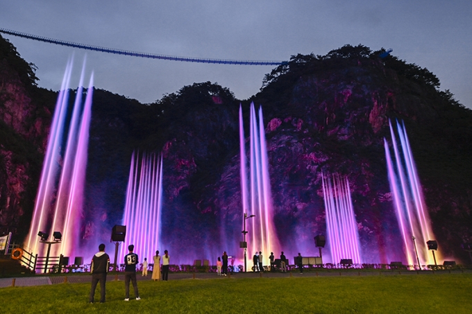 간현관광지 야간 개장은 10월 29일까지 매주 금~일요일 오후 6시30분부터 10시까지, 나오라쇼 공연은 오후 8시30분~9시20분까지 운영된다. 이용권은 7~12세 3000원, 13세 이상 5000원이다.