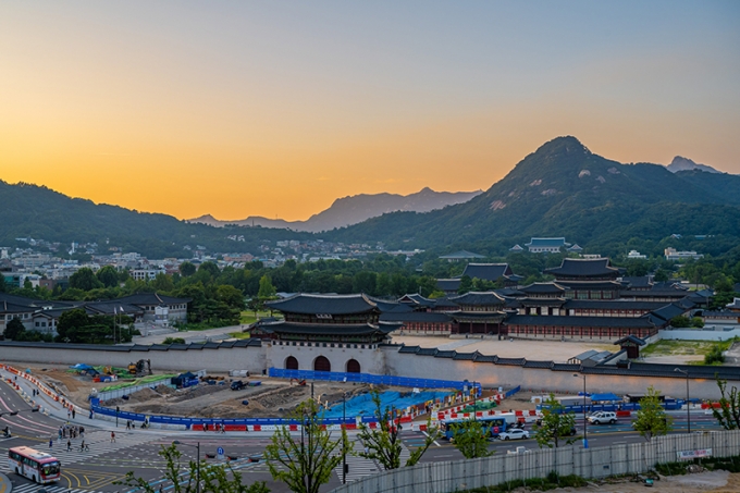 대한민국 역사박물관 8층 옥상정원에서는 경복궁부터 광화문까지, 서울의 산과 도심 그리고 고궁이 어우러진 그림 같은 풍경과 함께 노을을 즐길 수 있다.