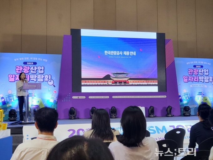 ▲18일 서울 코엑스 '2023 관광산업 일자리박람회'에서 진행된 한국관광공사 채용안내 설명회 ©newstree