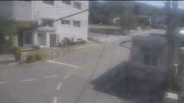 16톤(t) 화물차량이 쏜살같이 달려 간이건물을 그대로 들어받고 하천으로 추락하는 사고가 발생했다.