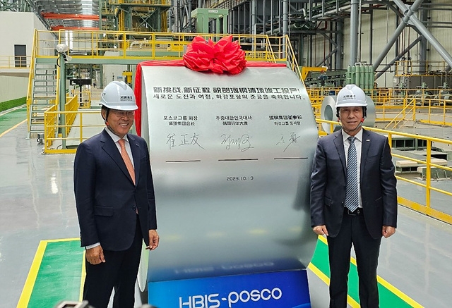포스코와 하북강철은 각각 3억달러씩 총 6억달러를 투자해 합작법인 '하강포항'(河钢港浦)을 설립하고, 지난해 1월 착공을 시작해 19일 45만톤 규모의 1기 공장을 준공했다. 2기 공장은 2024년 5월 준공 예정이다.
