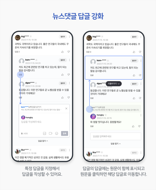다만 댓글에 대한 답글 작성은 이전처럼 동일하게 이용할 수 있다.