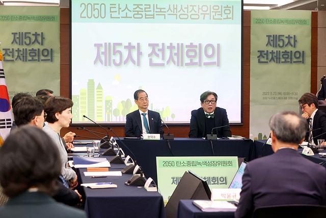 '2050 탄소중립녹색성장위원회'는 23일 서울 상암동 누리꿈 스퀘어에서 한덕수 국무총리 주재로 열린 제5차 전체회의에서 공공·민간 전반의 '그린 디지털 전환'을 통해 탄소중립 달성을 촉진하는 '디지털 전환을 통한 탄소중립 촉진방안' 등 4건을 확정했다.