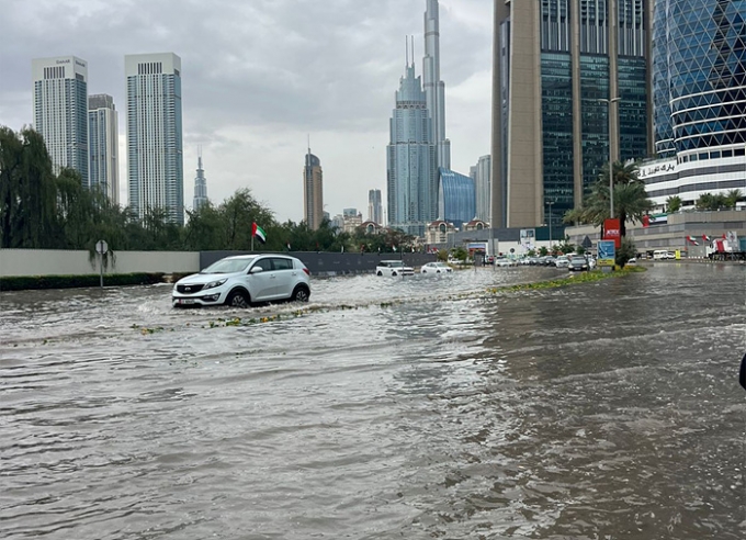 두바이의 이례적인 폭우에 소셜서비스(SNS)에는 침수와 뇌우 관련 영상과 소식이 잇따라 올라왔다. 영상을 보면 차량들이 반쯤 물에 잠긴 채 달리고 있거나 거리가 완전히 침수돼 강처럼 변해버린 모습을 확인할 수 있다.