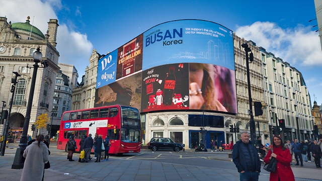 새로운 옥외광고는 엑스포 유치를 응원하는 메시지와 부산의 명소를 표현한 일러스트를 담았다. 이같은 디자인으로 부산의 푸른색으로 꾸민 '부산엑스포 블랙캡' 택시도 런던 곳곳을 누비며 주목을 끌고 있다.