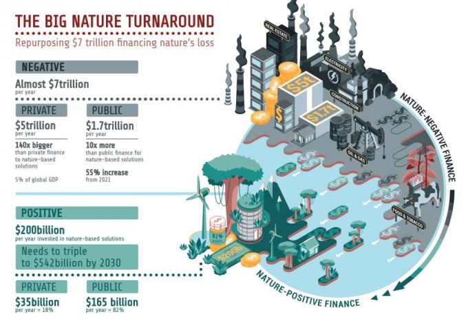 UNEP는 "금융부문과 기업은 자연에 기반한 투자를 늘릴 뿐만 아니라 투자금을 전환해 자연에 긍정적인 결과를 촉진해야 한다"며 "정부 정책도 이를 뒷받침 해야 한다"고 촉구했다. 이어 UNEP는 "식량, 채굴, 부동산, 인프라 등의 부문에 대한 대대적인 정비에 힘입어, 자연 기반 투자 전망이 밝아지고 있다"며 "이러한 기회는 기후위기에 투자하는 것과 수익성이 맞먹을 뿐만 아니라, 영향력 있는 변화를 위한 중추적인 순간을 제시한다"고 강조했다.