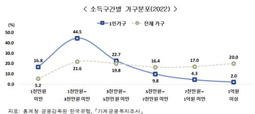 1인가구 가운데 연소득 3000만원 미만인 가구가 61.3%에 달했다. 전체 가구수로 따지면 26.8% 비중이다. 1억원 이상을 버는 1인가구는 2%에 그쳤다.