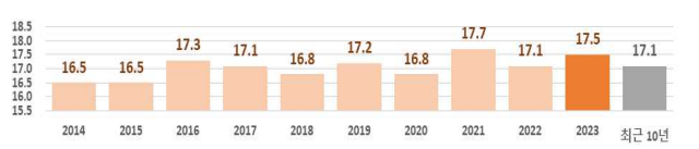 지난해는 바다도 뜨거웠다. 2023년 우리나라 해역의 해수면 온도는 평균 17.5℃였다. 이는 최근 10년 평균치보다 0.4℃ 높고, 10년 사이 2번째로 높은 것이다.