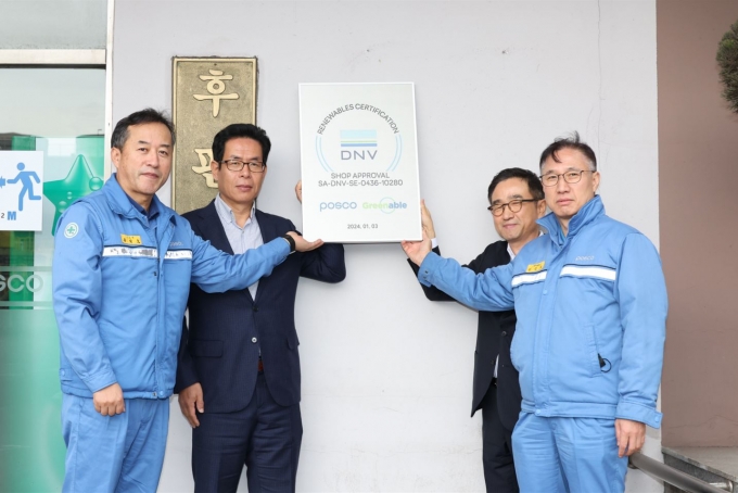 포스코 후판 생산공장이 에너지 전문인증기관 '노르웨이 선급협회'(Det Norske Veritas, DNV)로부터 신재생에너지 인증을 획득했다.