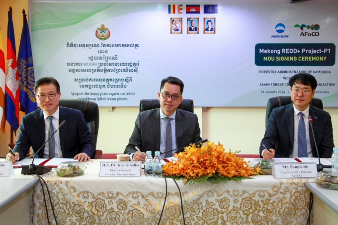 18일 우리은행은 캄보디아 수도 프놈펜에서 캄보디아 산림청, 아시아산림협력기구와 함께 REDD+ 다자간 업무협약을 체결했다고 밝혔다. REDD+는 개발도상국의 산림전용과 황폐화를 방지하고, 산림보전을 통해 토양 탄소흡수력을 증진시켜 기후변화에 대응하는 것을 목표로 한다.
