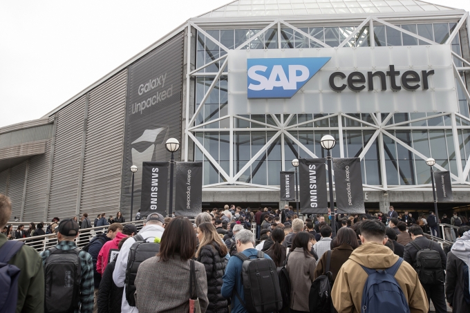갤럭시S24 시리즈를 처음 공개하는 '갤럭시 언팩 2024' 행사장도 전세계에서 모인 1700여명의 미디어와 인플루언서, 파트너사 관계자들로 가득찼다. 공식 행사는 이날 오전 10시였지만 9시부터 행사장 앞에는 길게 줄이 늘어섰다. 특히 제품 소개 뒤 진행된 시연행사장은 새로운 갤럭시S24를 체험해보려는 사람들로 북새통을 이뤘다.