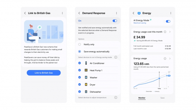 브리티시 가스의 '피크 세이브'는 겨울철 전력 소비가 높은 시간대에 전력 사용량을 자발적으로 줄이는 세대에게 인센티브를 지급하는 프로그램이다. 이를 '스마트싱스 에너지'와 연동해 영국 소비자들이 손쉽게 에너지를 절감할 수 있도록 한다는 것이다.