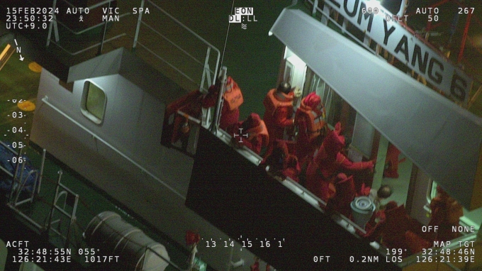 해경은 5000톤급 경비함정을 동원해 1시간 30여분만인 16일 오전 1시30분경 선장 등 한국인 선원 2명과 미얀마 국적 선원 6명, 인도네시아 국적 선원 3명 등 11명을 모두 구조했다.