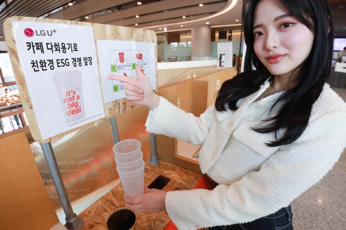 LG유플러스 일평균 1300여명이 이용하는 본사 용산사옥 사내 카페에서 일회용기를 다회용기로 대체한다.
