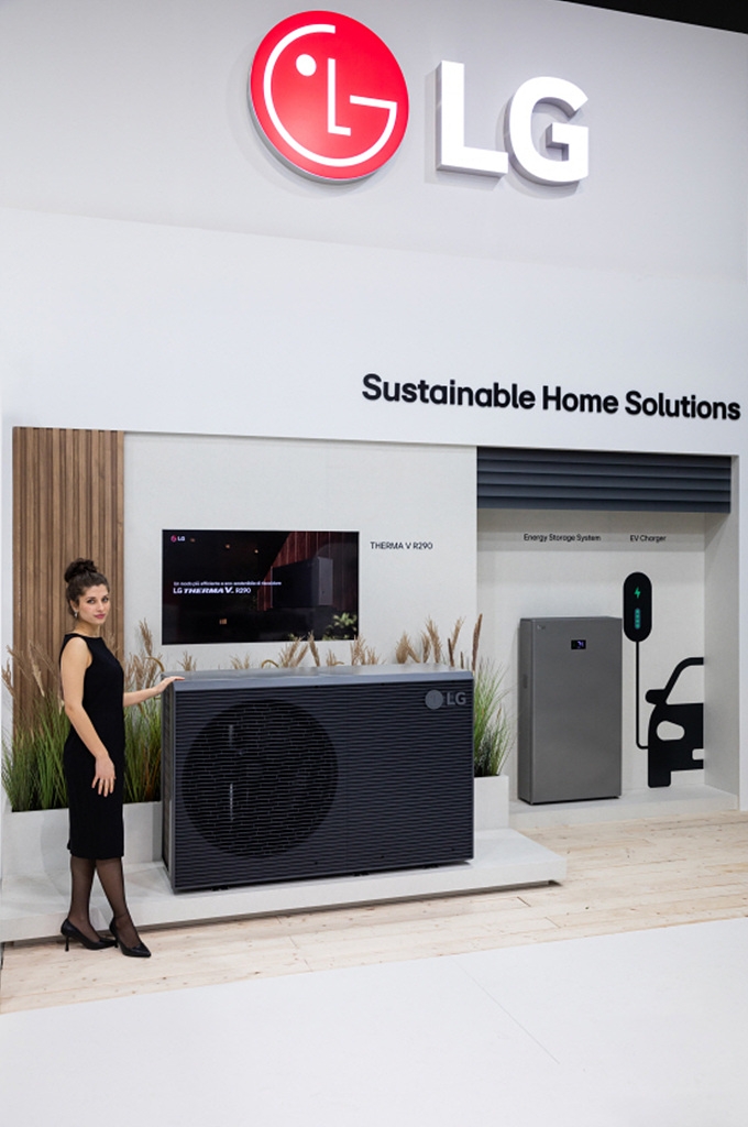 432㎡ 규모 부스를 마련한 LG전자는 MCE의 '주거용 솔루션존'에서 고효율 냉난방 공조(HVAC; heating, ventilation and air conditioning)를 앞세운 토털 에너지 솔루션 '지속가능한 집'(Sustainable Home)을 제시한다. 화석연료를 사용하지 않는 고효율 히트펌프 냉난방시스템 '써마브이 R290 모노블럭'(Therma V R290 Monobloc)은 차세대 친환경 냉매와 블랙 컬러의 고급스러운 실외기 디자인을 적용해 더욱 업그레이드됐다. 이 제품은 유럽 ErP(Energy-related Products) 에너지등급 중 가장 높은 'A+++'를 만족한다.