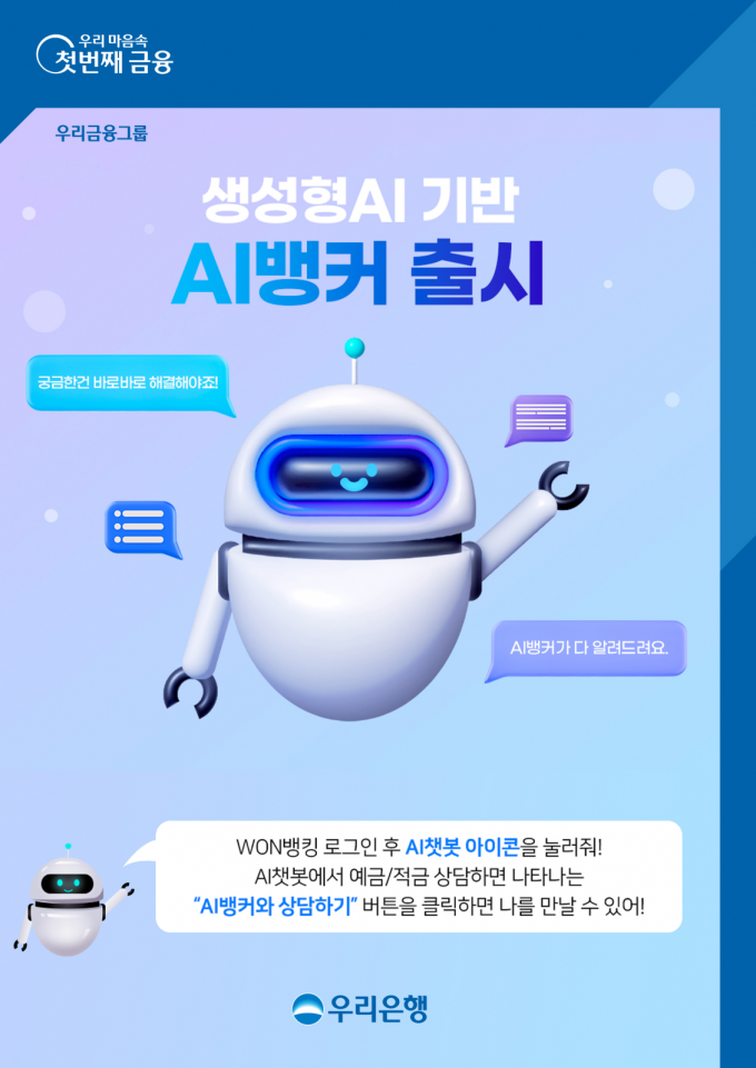 우리은행이 국내 최초로 생성형 AI 기반 금융상담을 제공하는 'AI뱅커 서비스'를 지난 5일 오픈했다.