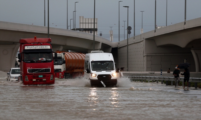 16일(현지시간) 중동 아랍에미리트(UAE) 두바이에 12시간동안 1년치 강수량인 100㎜에 달하는 폭우가 쏟아졌다. 이로 인해 주택과 상점가, 도로 등이 침수됐고 국제 공항 활주로가 물에 잠겨 한때 운항이 중단되기도 했다.