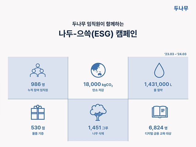 이석우 두나무 대표는 "지속가능한 발전을 위해 두나무란 사명 그대로 기술과 금융으로 우리 사회 속 희망의 숲을 만들어 나갈 것"이라며 "앞으로도 전 직원이 한뜻으로 ESG 경영을 실천하고 사회적 책임을 다하도록 노력하겠다"고 말했다.