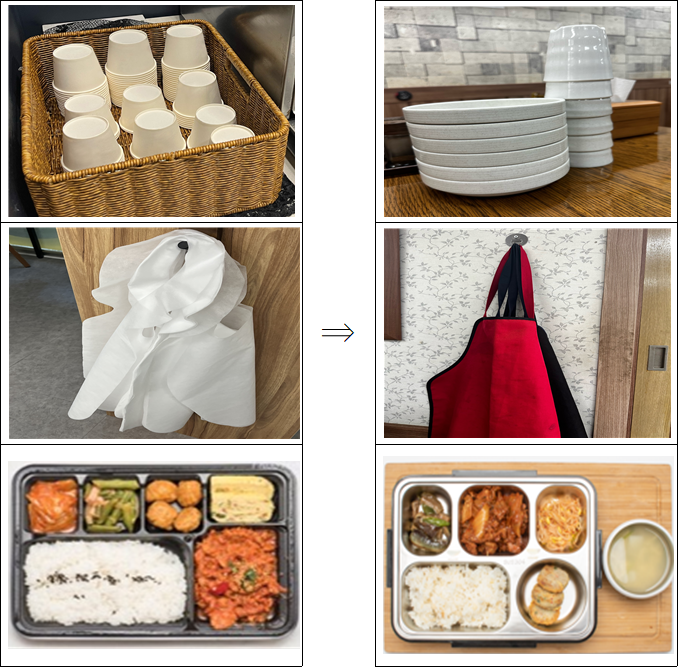 협약 참여업체는 일회용품 사용 줄이기·재활용 촉진, 홍보 등 실천 문화 확산에 동참할 예정이다. 일례로 고객이 먼저 종이컵, 물티슈 등 일회용품을 요청하지 않은 경우에는 해당 일회용품을 제공하지 않도록 하거나, 식탁에 종이컵을 쌓아 놓지 않도록 해 필요한 양 이상의 종이컵을 사용하지 않도록 이용객들의 행동을 유도하는 '넛지형 켐페인'을 활성화할 예정이다.