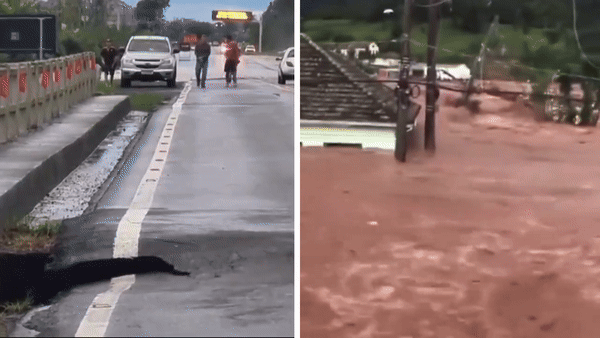 브라질 남부지역이 역대급 폭우로 물바다로 변했다. 소셜서비스(SNS)에는 불어난 강물에 다리가 통째로 쓸려가는 모습이 고스란히 포착됐다.