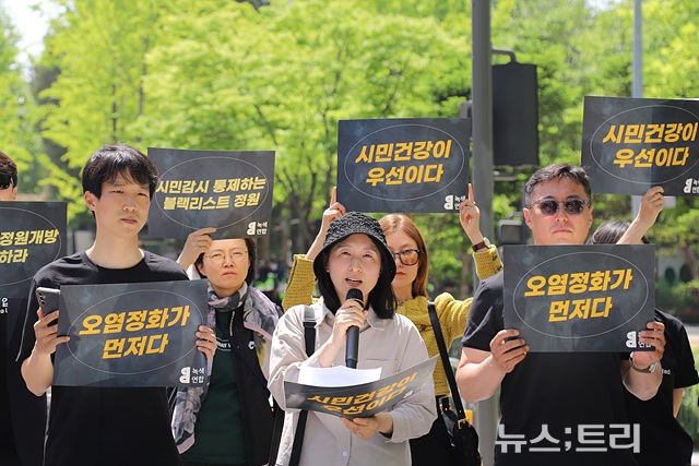 3일 서울 용산어린이정원 정문 앞에서 녹색연합과 온전한생태평화공원 조성을 위한 용산시민회의 주최로 열린 기자회견에서 임성희 녹색연합 팀장은 "당초 정부계획에 따르면 2022년 용산기지가 반환된 이후 7년간 어떤 공법으로 정화를 할 건지, 그리고 정화가 됐는지 검증하고, 그 계획에 따라 공원을 만드는 것이었지만, 이런 일정을 일방적으로 무시한 채 정화없이 시민들에게 개방했다"고 규탄했다.