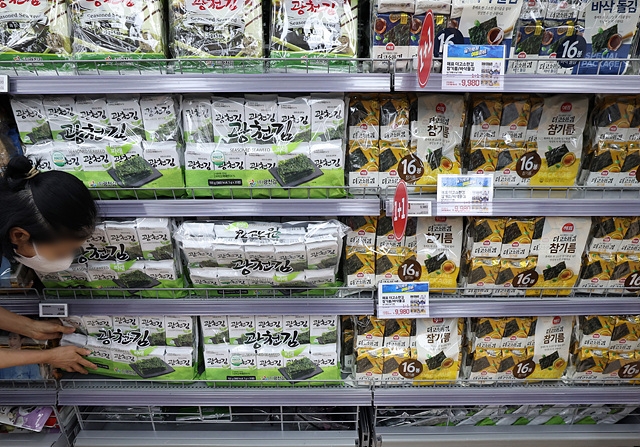 앞서 5월초 CJ제일제당이 김 가격을 11∼30% 인상했다. 이에 따라 20봉 묶음제품인 'CJ비비고 직화 들기름김'과 'CJ 비비고 직화 참기름김'은 8980원에서 9980원으로 11% 인상됐고, 16봉 묶음제품인 'CJ 명가 재래김'도 5380원에서 6980원으로 30% 올랐다.