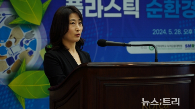 이명화 아모레퍼시픽 지속가능경영센터 부장은 28일 서울 태평로 한국프레스센터에서 인하대학교 녹색금융대학원과 지속가능경영연구소 주최, 뉴스트리와 SDG연구소 주관으로 열린 '녹색금융&ESG세미나'에서 '순환경제를 위한 아모레퍼시픽 4R 전략'에 대해 이같이 소개했다.